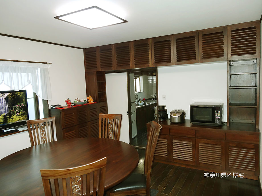 2020年 6月 7日 製作事例(キャビネット)のページに、幅広のサイドボードのお部屋への