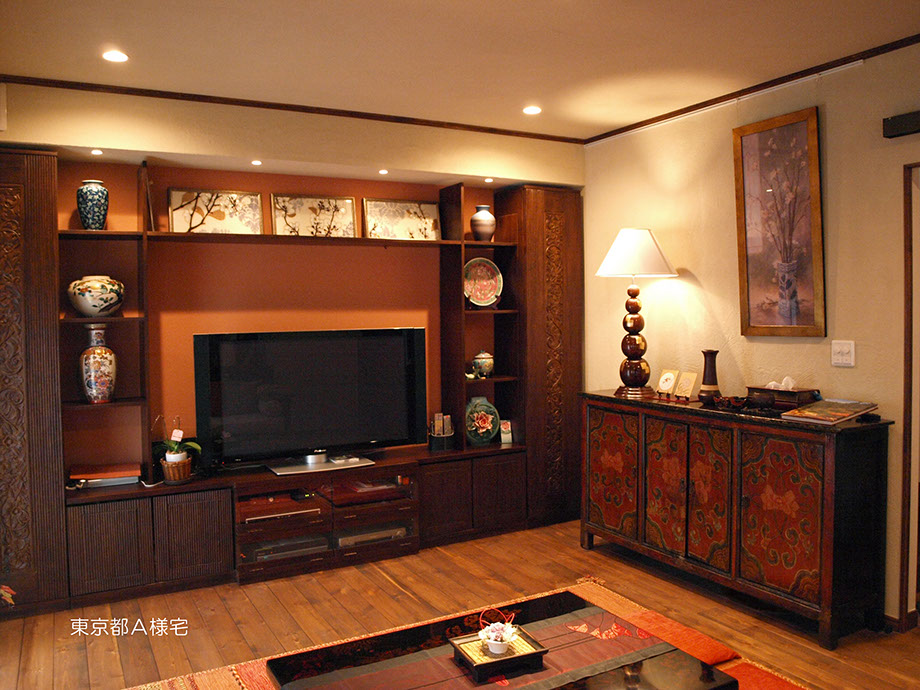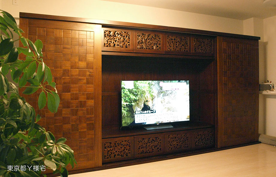 2020年 6月20日 製作事例(TVボード)のページに、李朝をイメージした壁面タイプのTV
